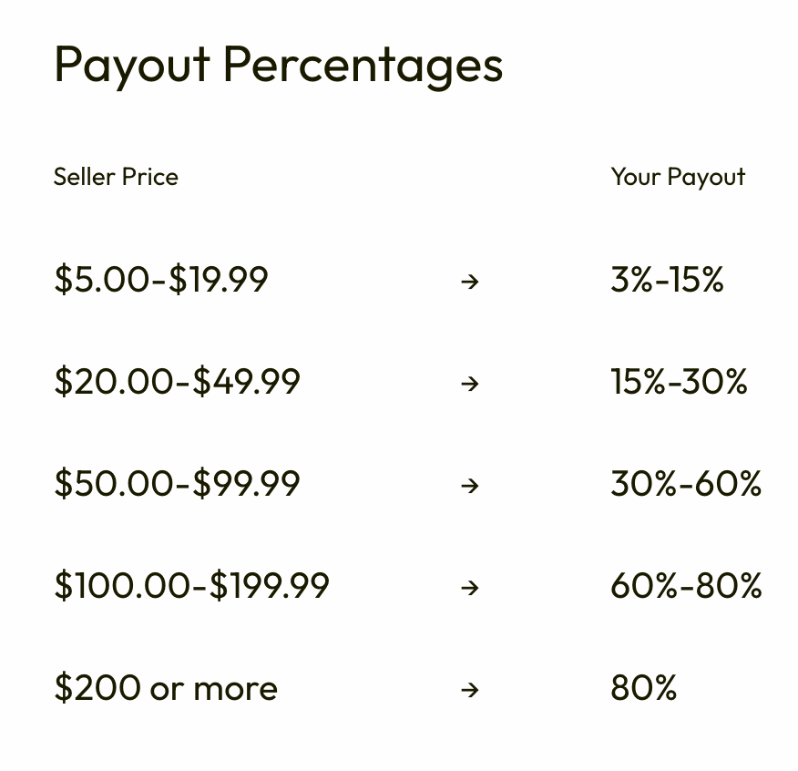 The pricing of your listed items is based on various factors, including brand, style, condition, size, and overall salability. Some value brands are ineligible for a payout, but you can still feel good about sending them in. See a list of ineligible brands here.